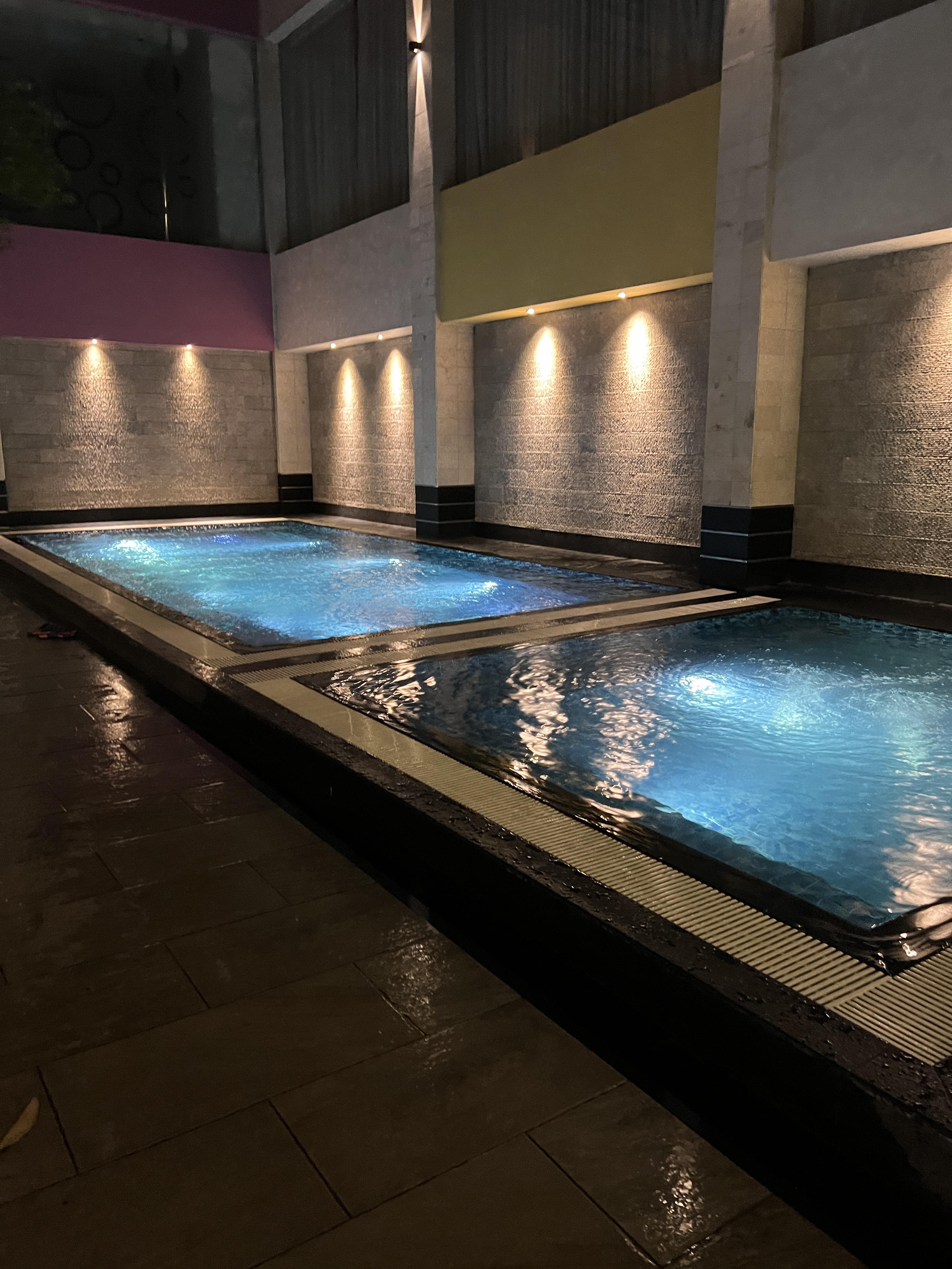 1.2미터 수심의 큰 수영장과 낮은 수심의 열탕,냉탕이 있어서 놀기 딱 좋았다. 온탕이아닌 열탕느낌의 완전 뜨거운 물과 머리 깨질듯한 냉탕이라 조금 당황스럽긴 했음 ㅋㅋ 바로 옆에는 사우나도 있어서 그리 번잡하진 않았다.
