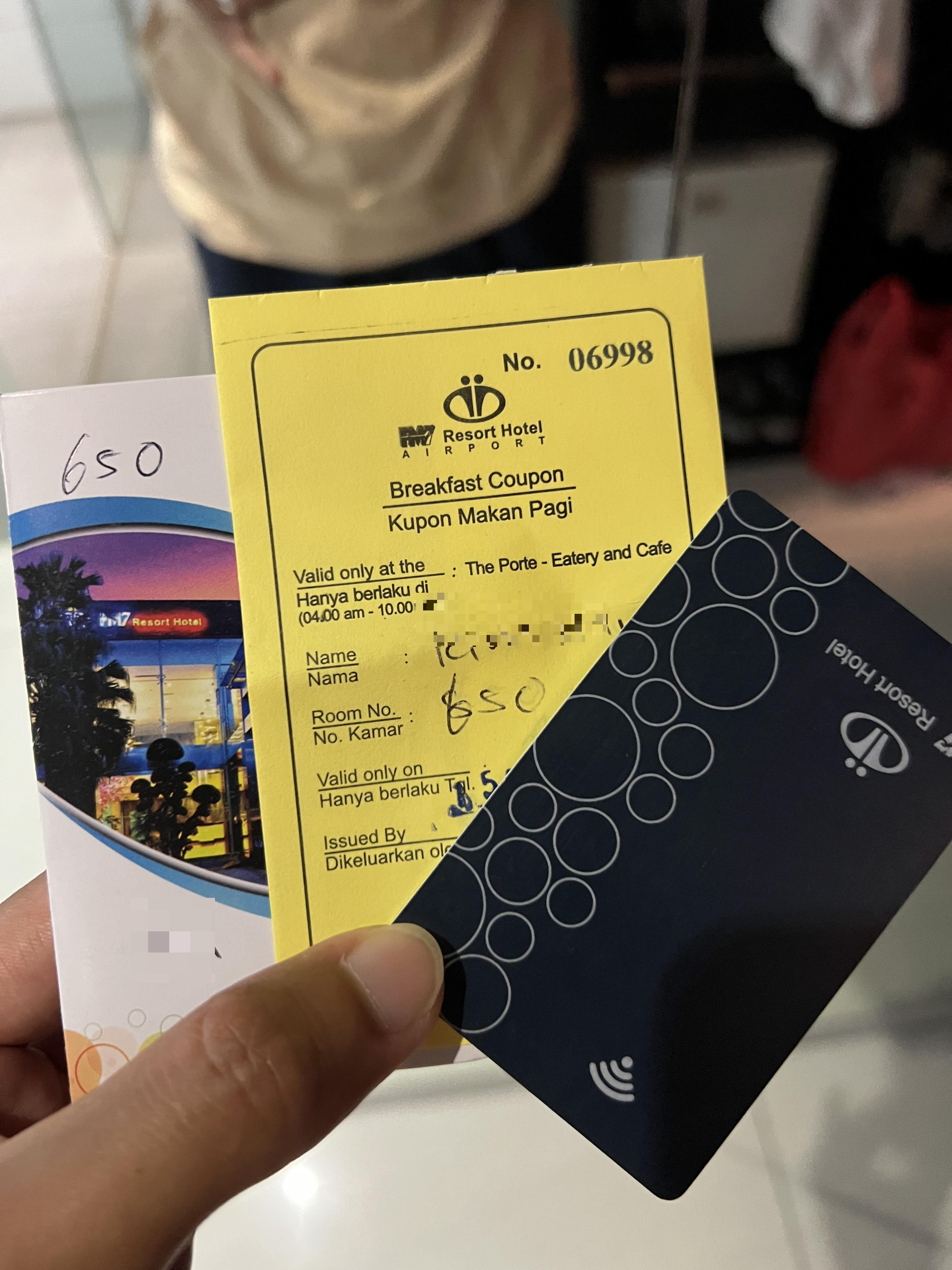 방키와 노란색 조식 티켓! 2인 2박인데 2장을줘서 뭐지 했는데 다음날 아침 조식먹고 호텔 인포에가니 2장 더 받음