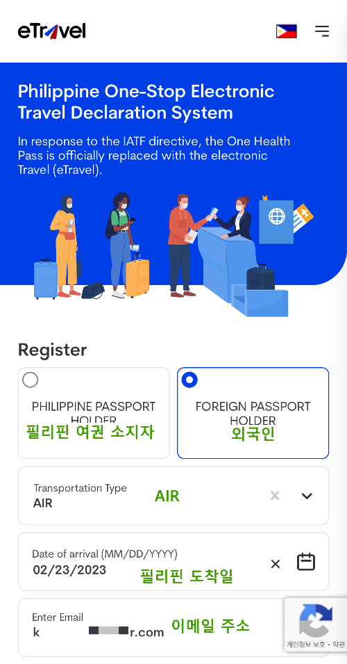 <필리핀 eTravel 사이트>