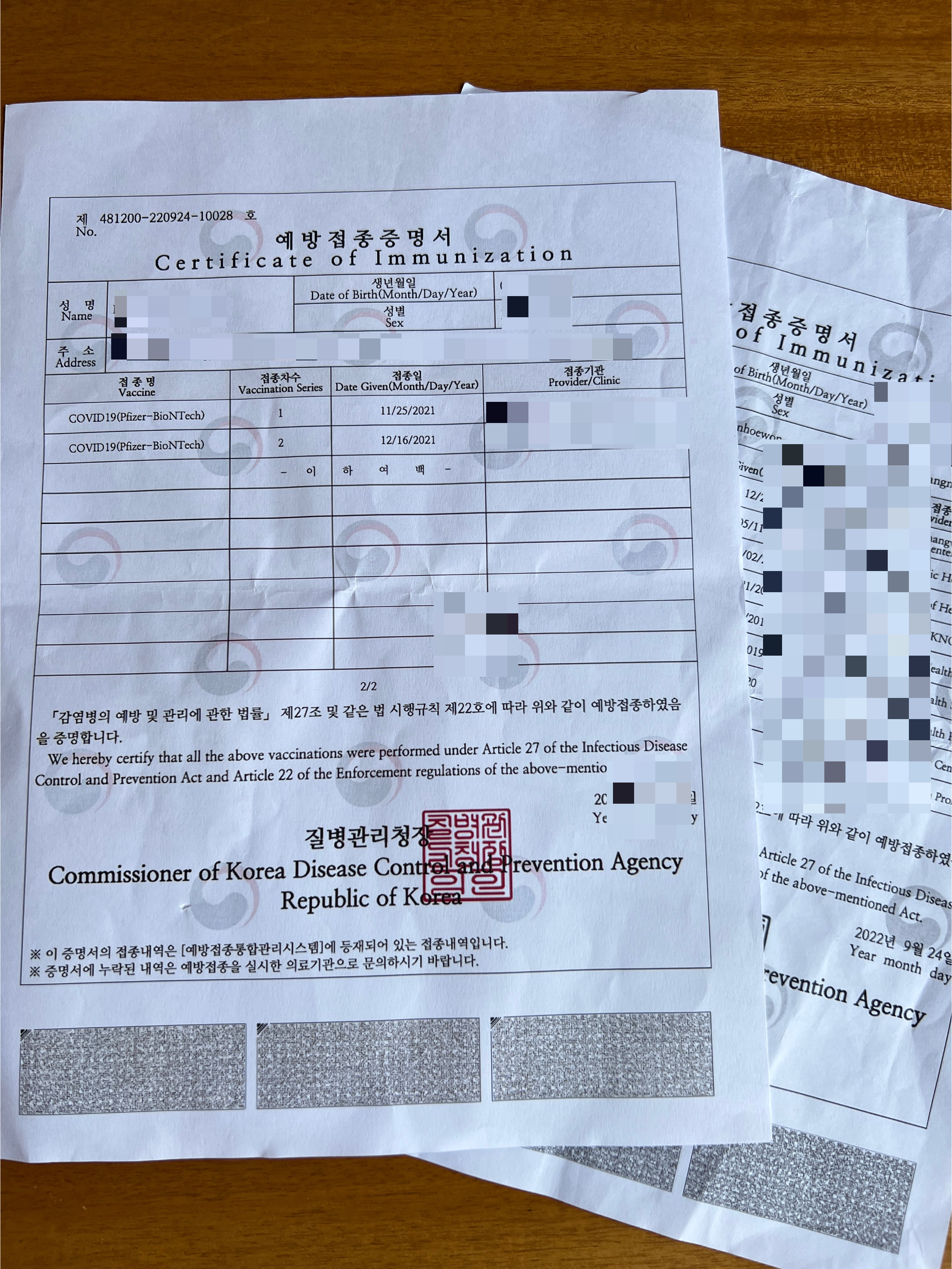 - 코로나19 영문 예방접종 증명서 발급 (반드시 영문으로 준비)