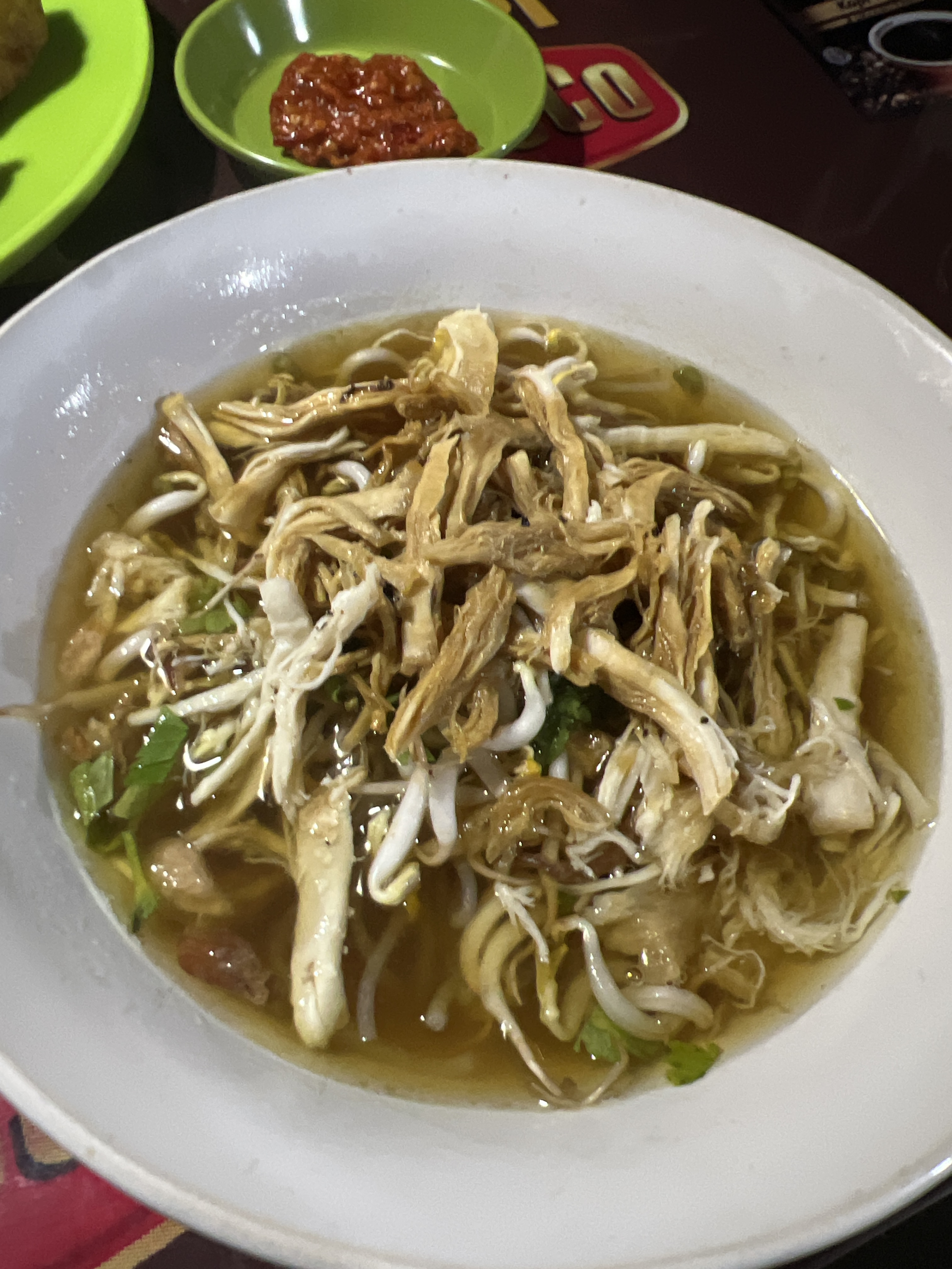 소또아얌(soto ayam) 닭 육수 베이스에 향신료가 들어간 얇은 면 요리다.