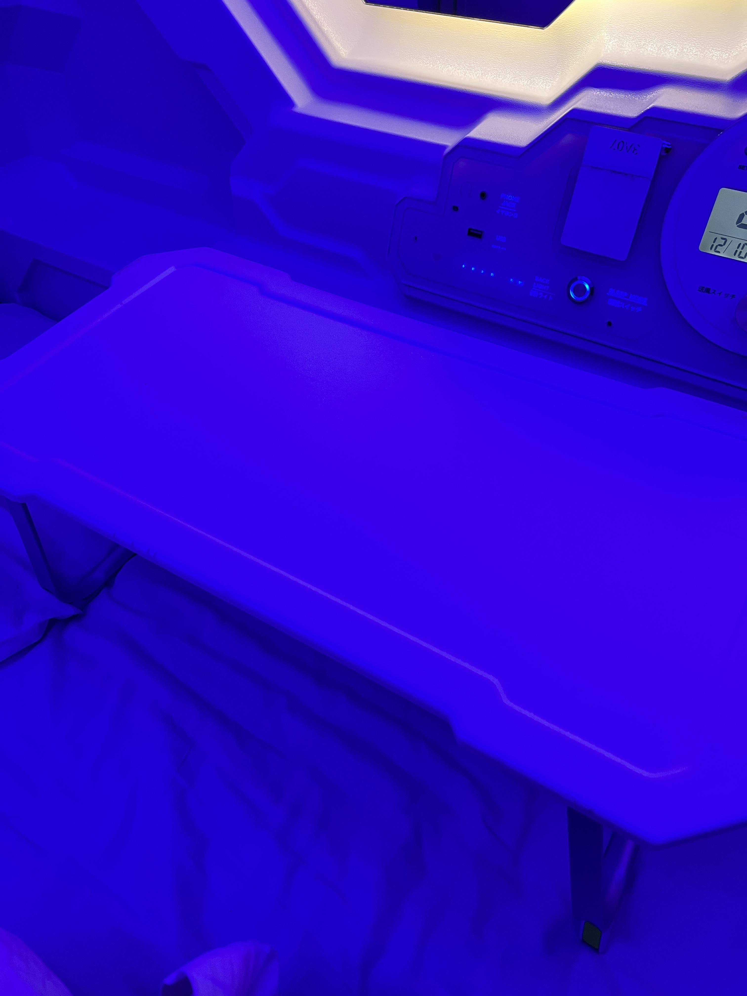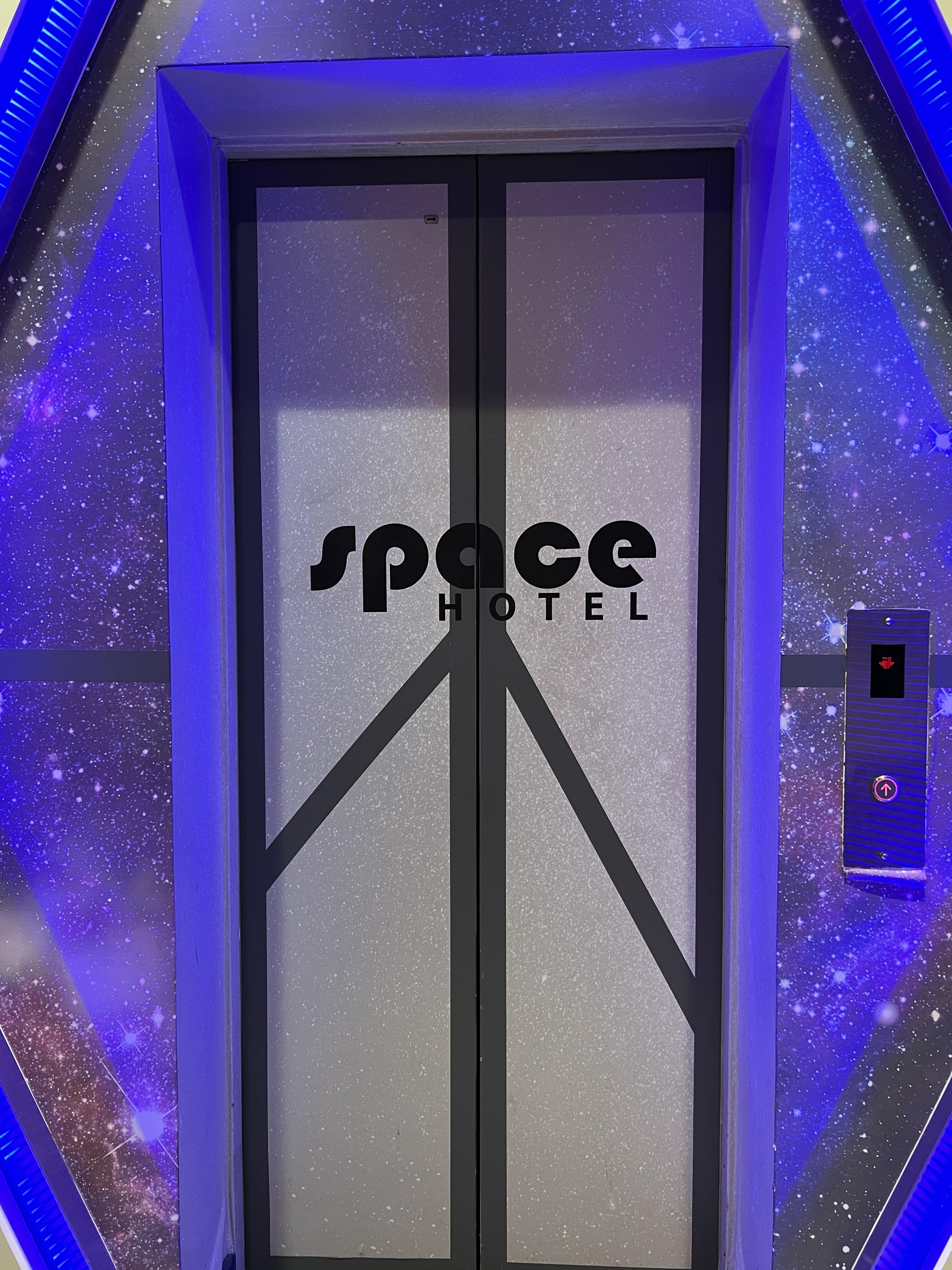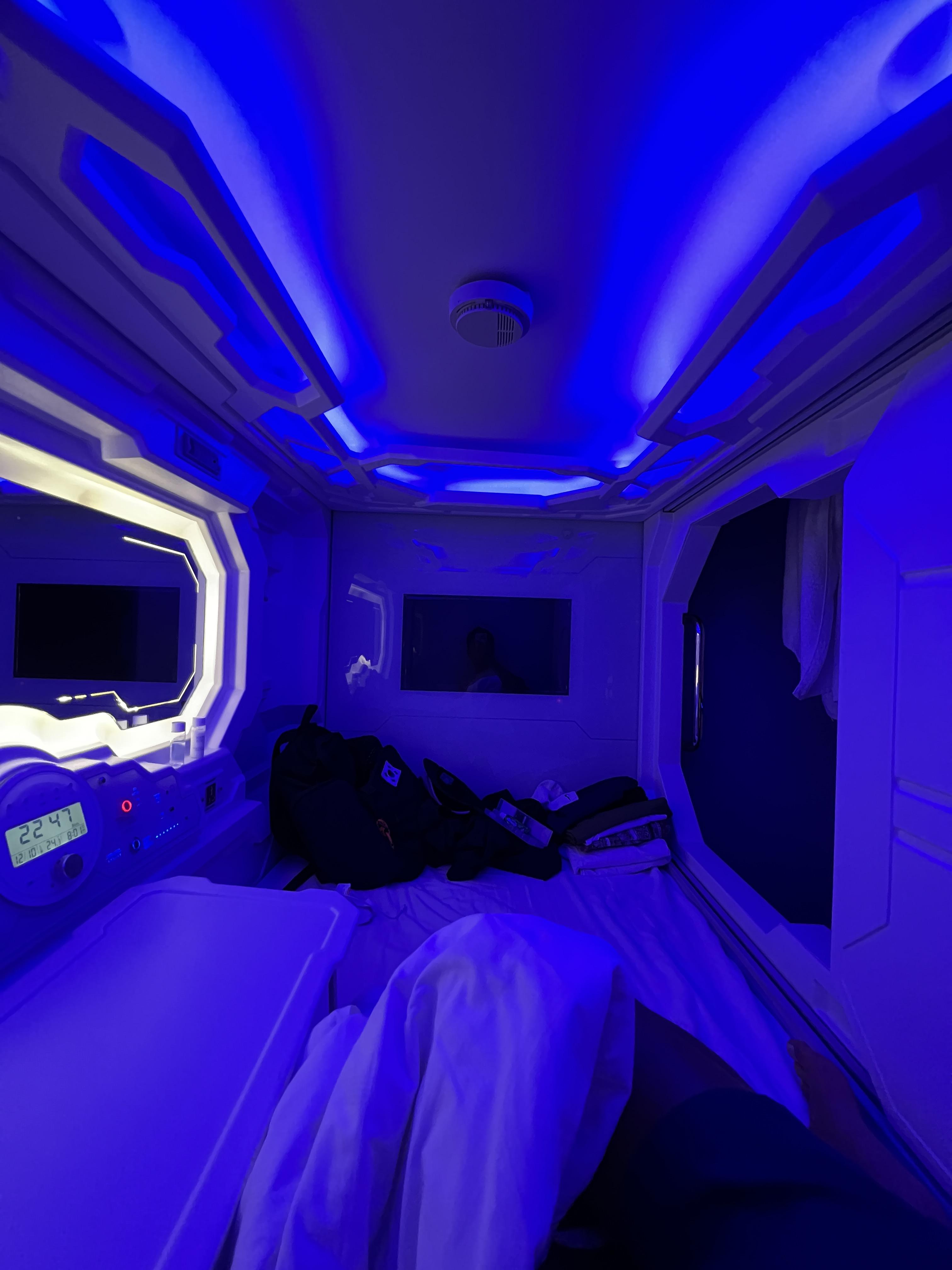 우주 컨셉의 캡슐 호텔에서 묵게됐다.