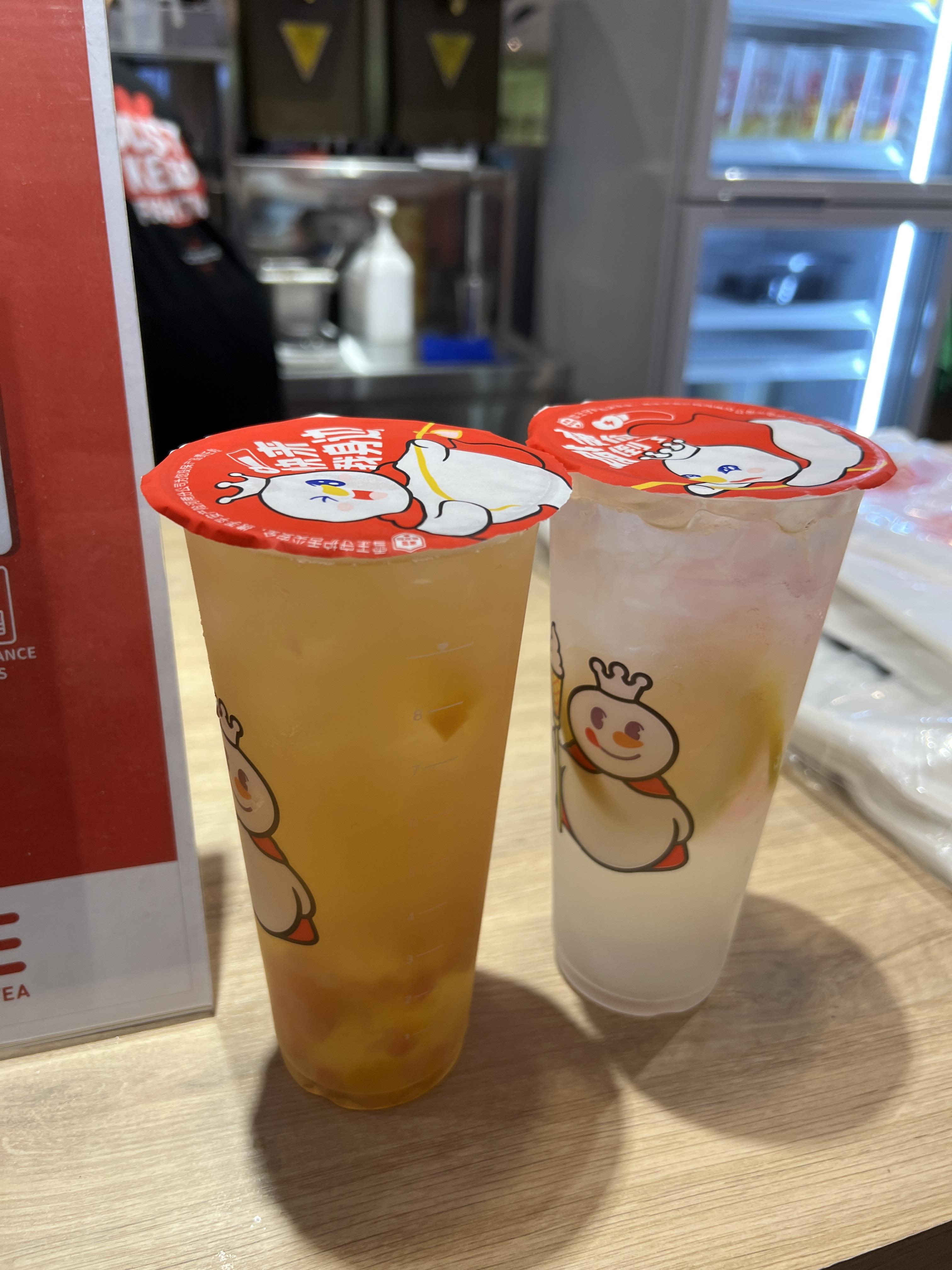 레몬에이드와 피치우롱티를 주문했다.