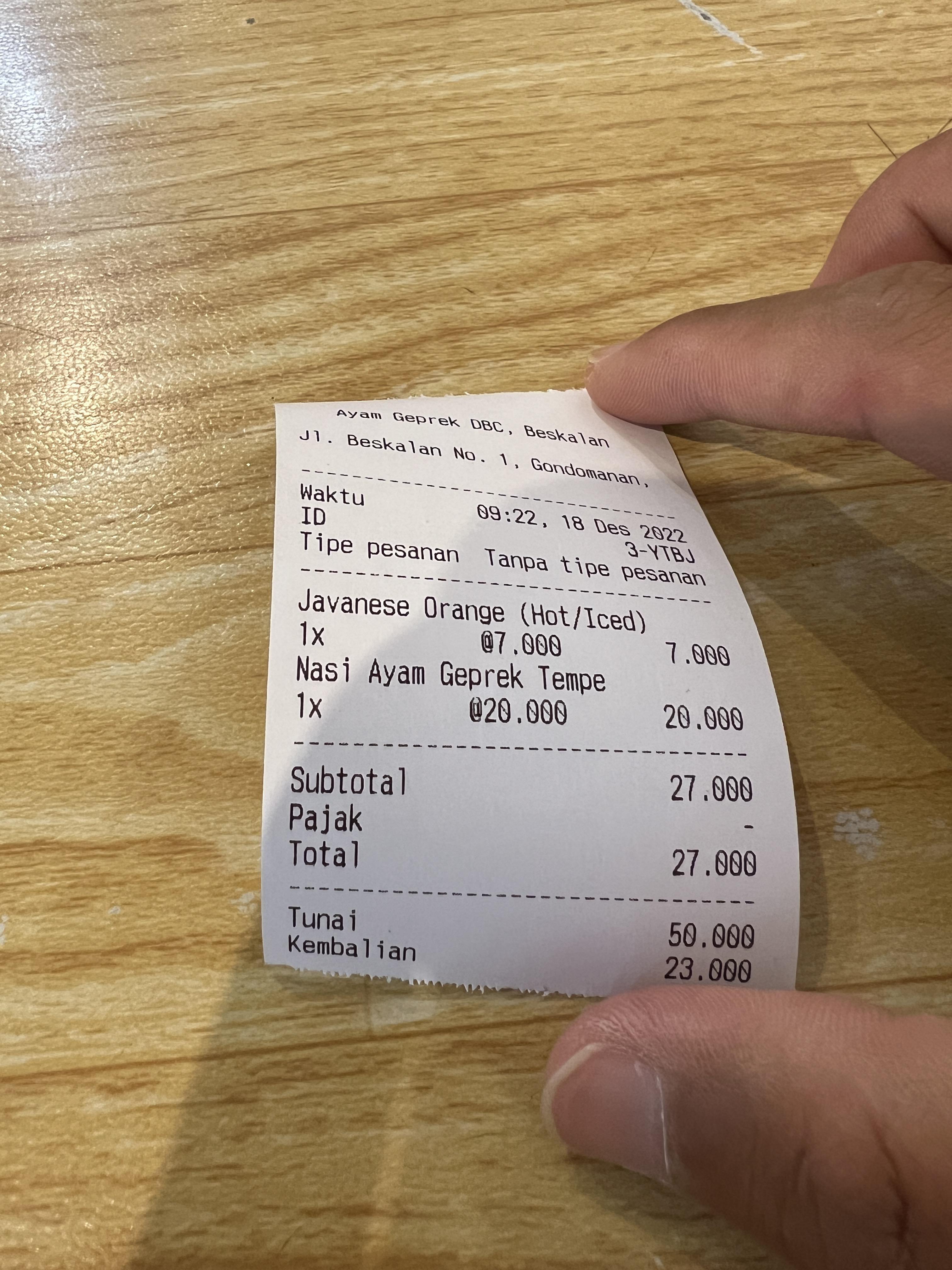 가격이 27,000루피아 한화 약 2,200원이다.