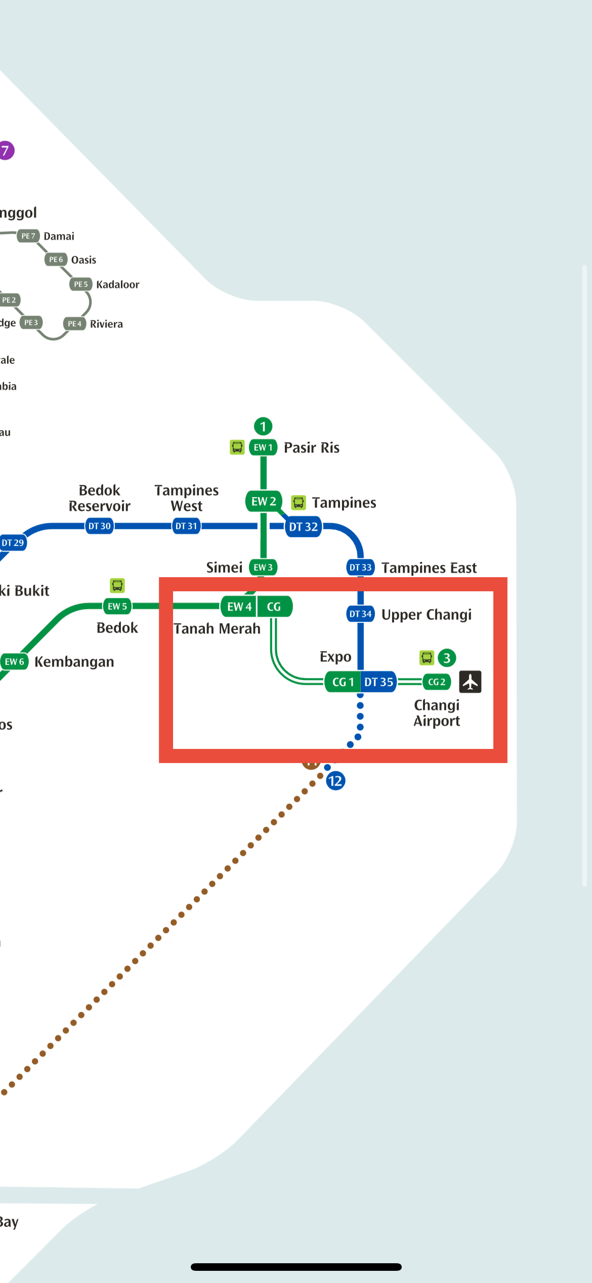 창이공항에서 엑스포를 지나 타나메라역까지만