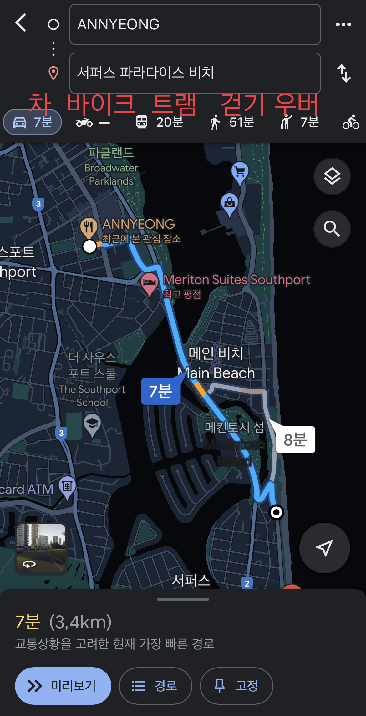 구글맵 PC버전과 어플의 차이점은 길찾기를 했을때