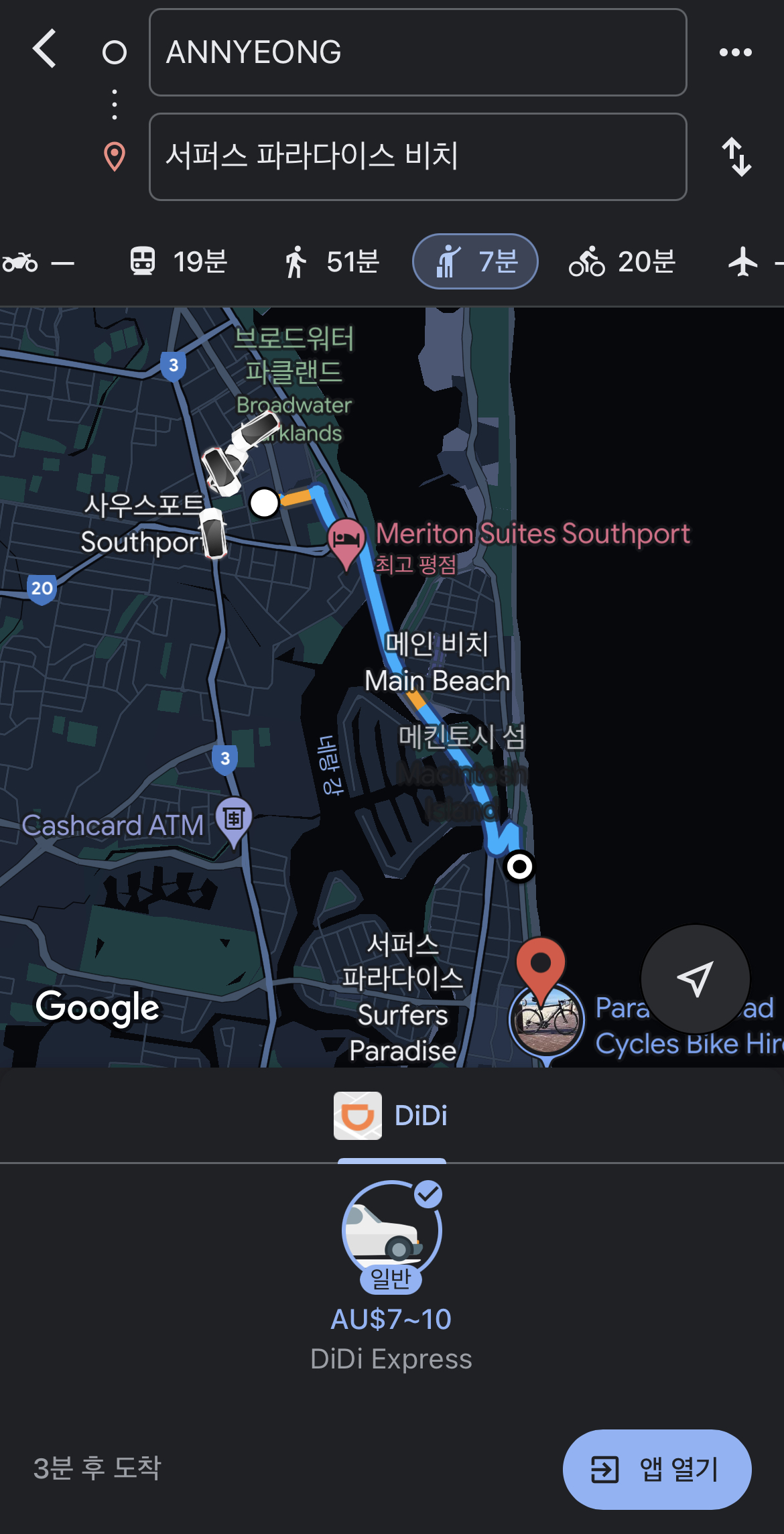 각 나라에서 사용하는 콜택시가 뜬다. 호주는 디디 didi가 뜸