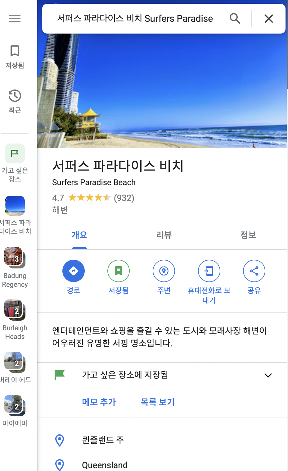 마지막으로 구글맵 어플 아래쪽에 저장됨을 클릭하면