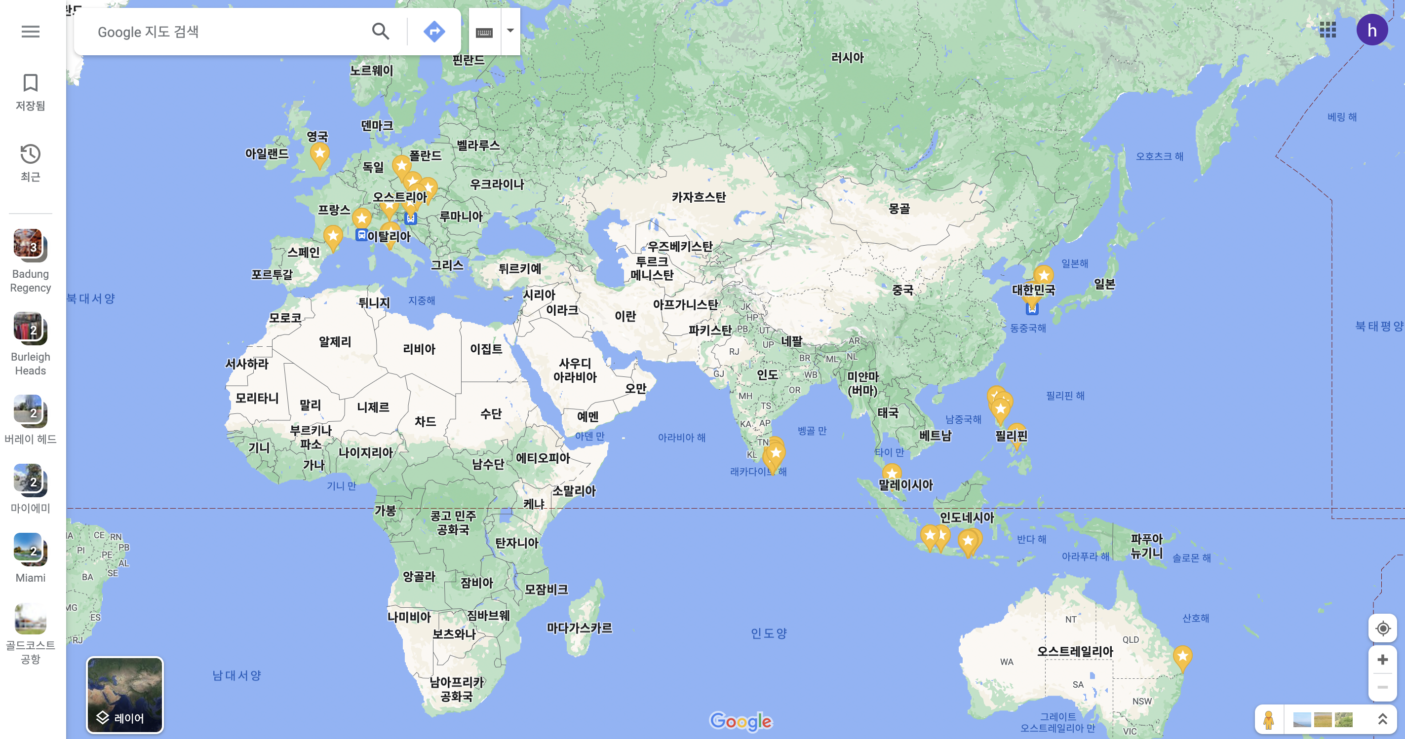숙소등을 그때그때 핀으로 표시해뒀는데
