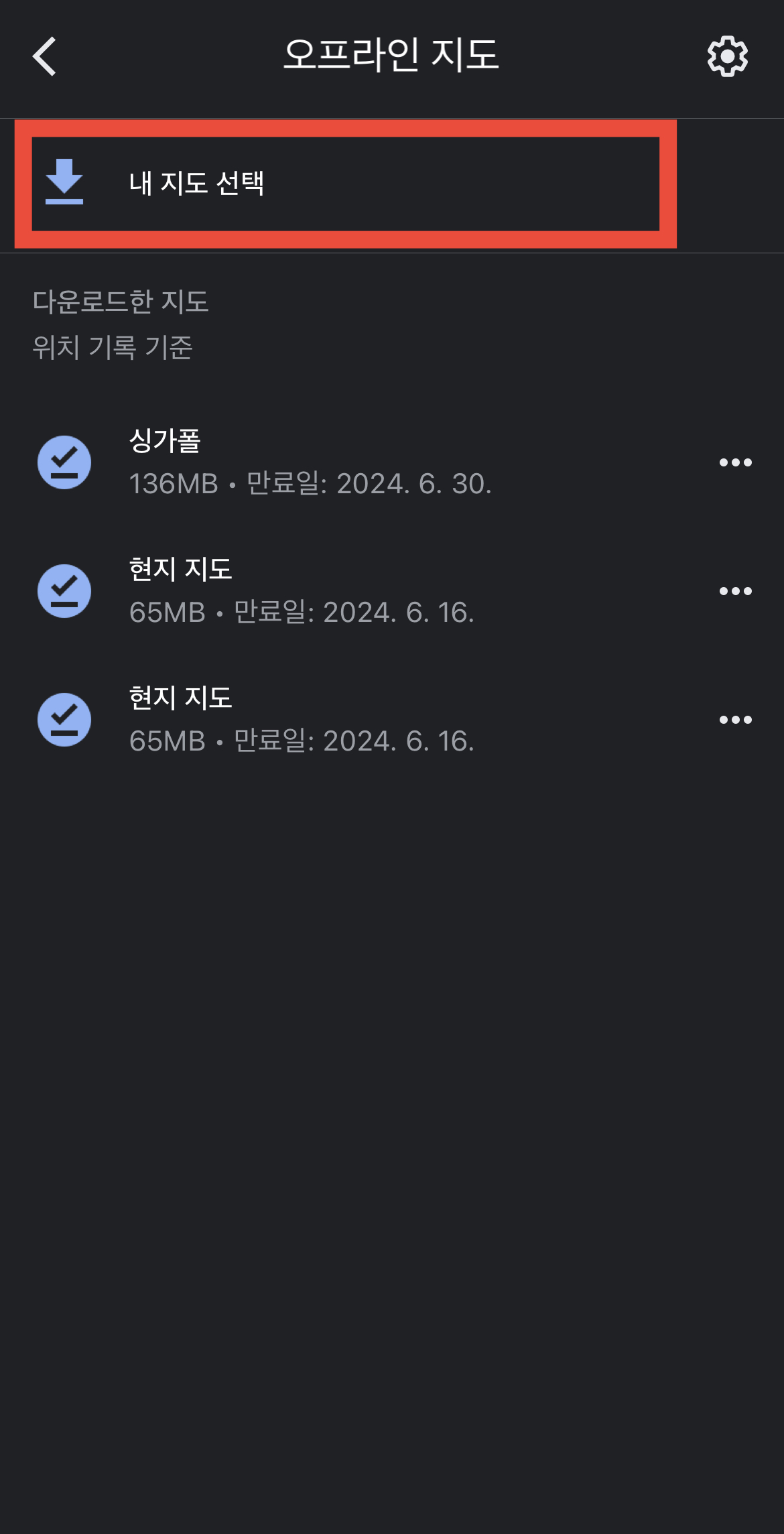 내가 다운받을 오프라인 지도를 선택하여 다운로드 클릭