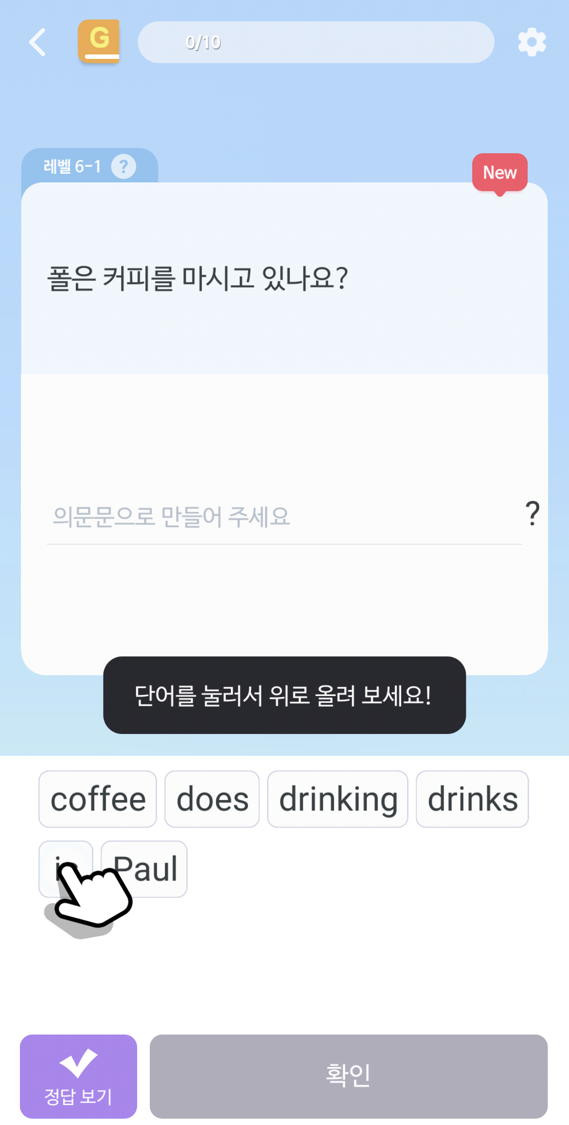 객관식은 단어들을 순서대로 맞춰보는 모드고,