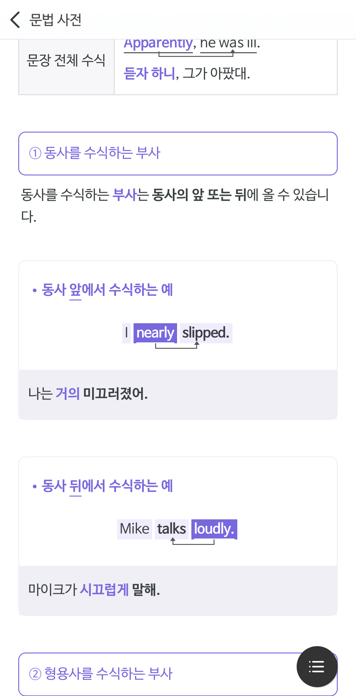 그리고 문법사전에서 다른 예문들로 이해를 도와줌!