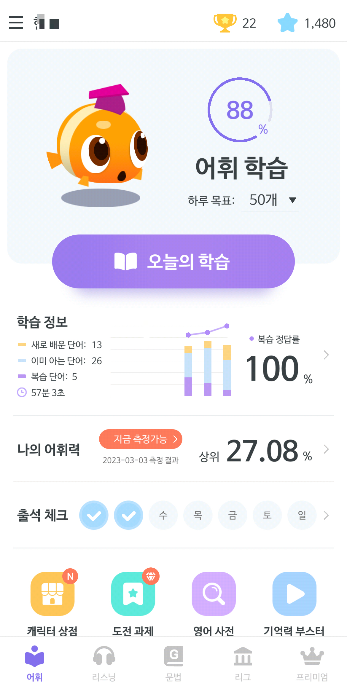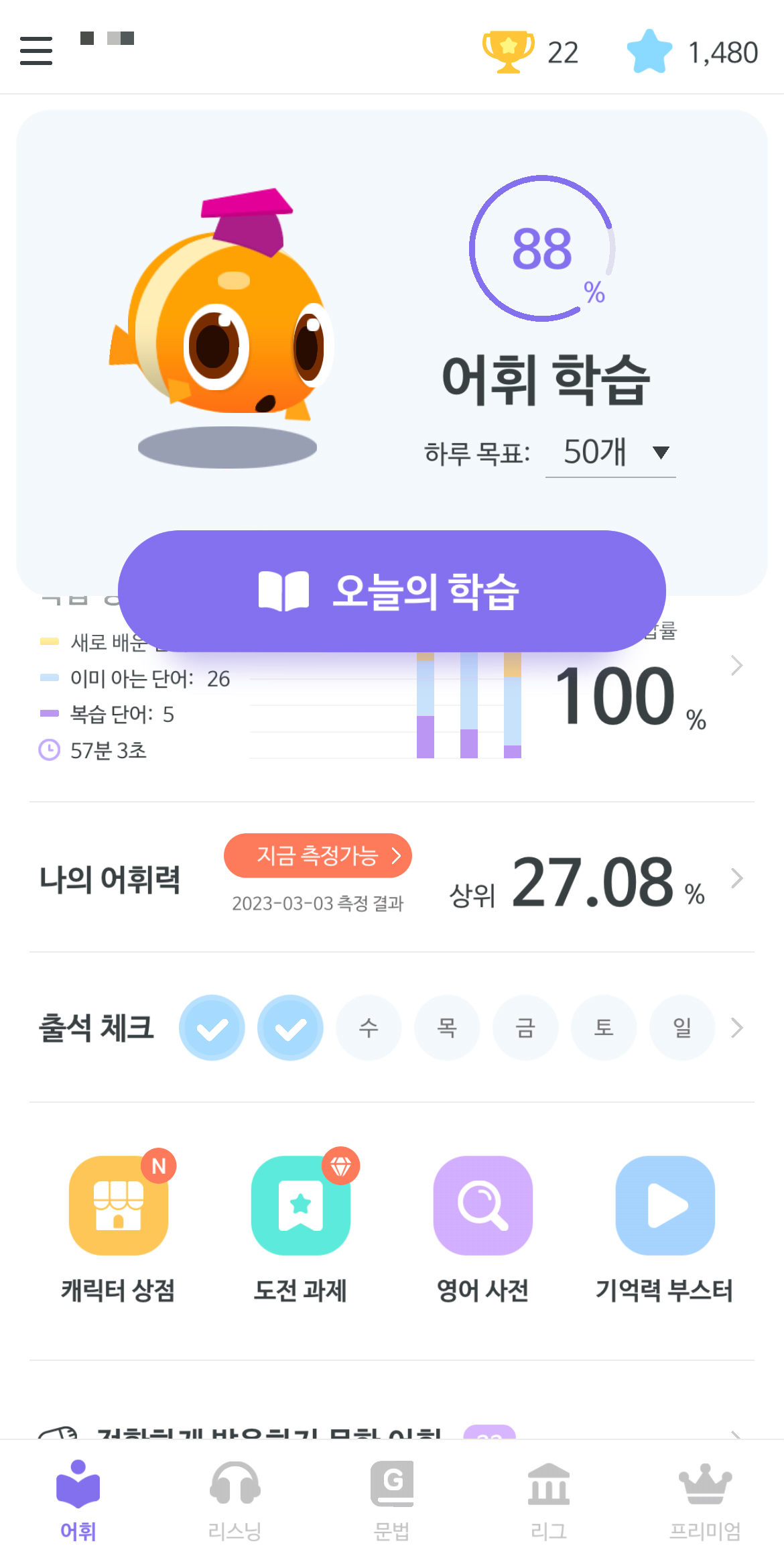 어휘를 며칠해보고 어휘력 측정을 해봤는데