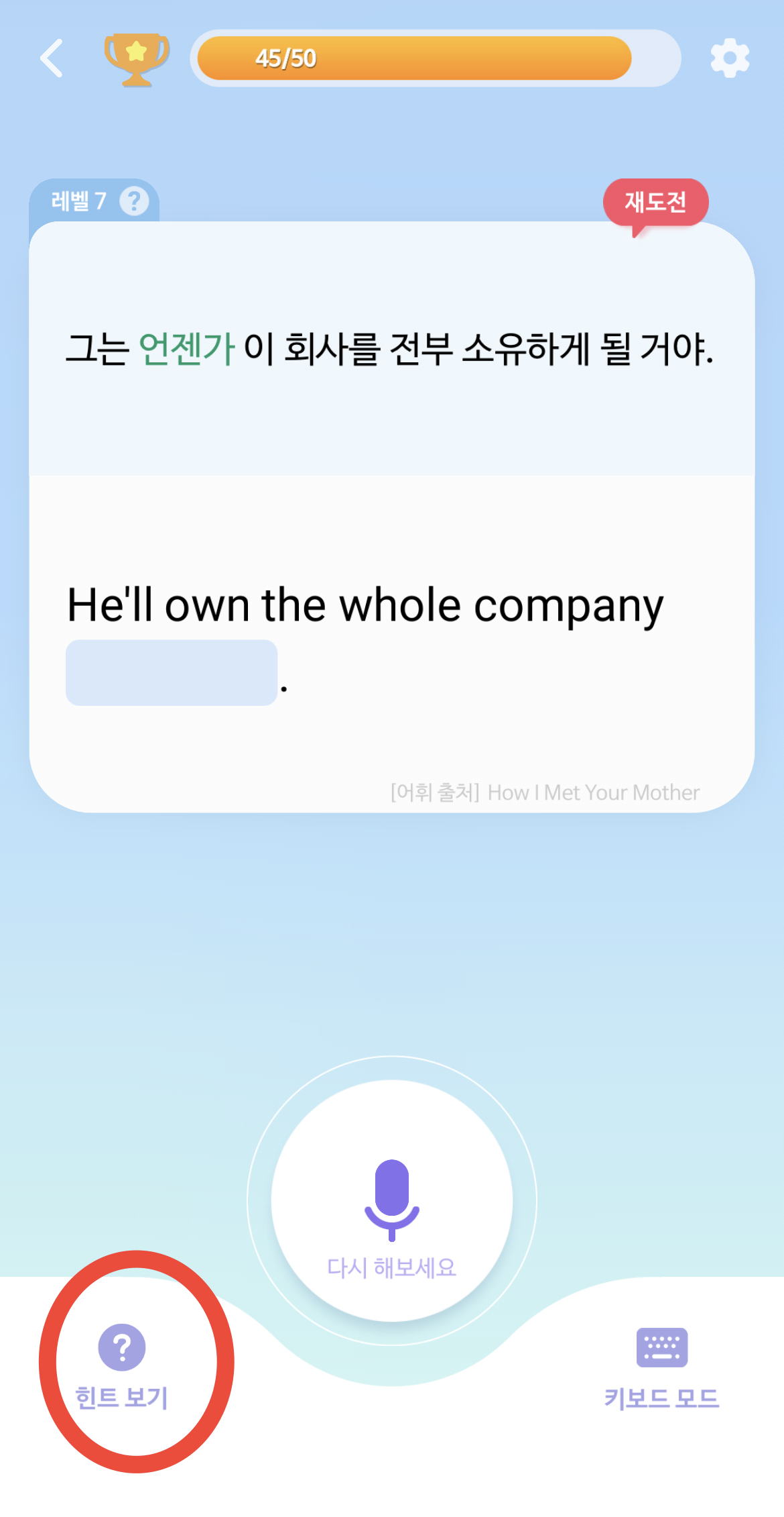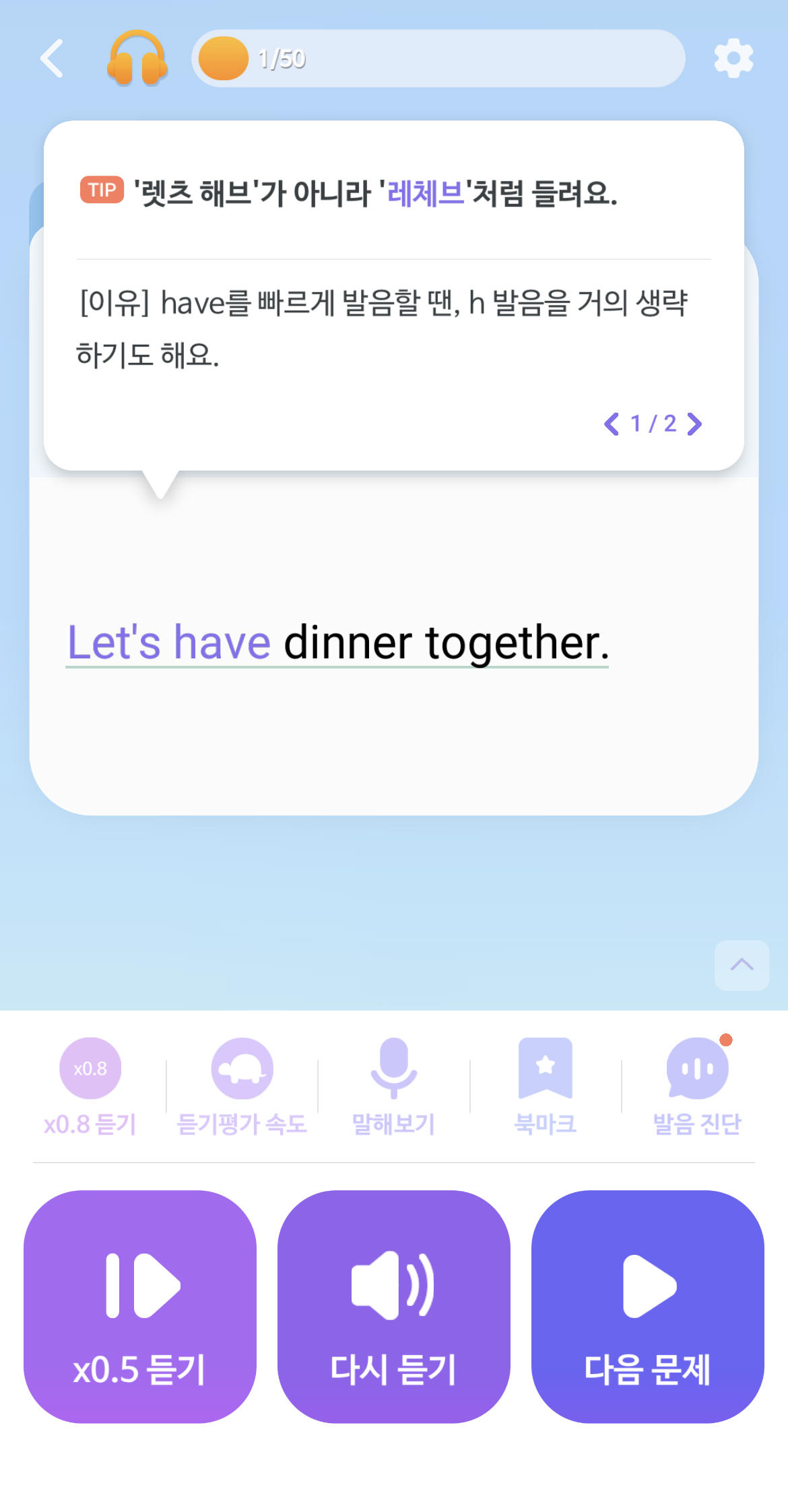 힌트나 정답을 바로 볼 수 있고 원어민이 읽어주기때문에