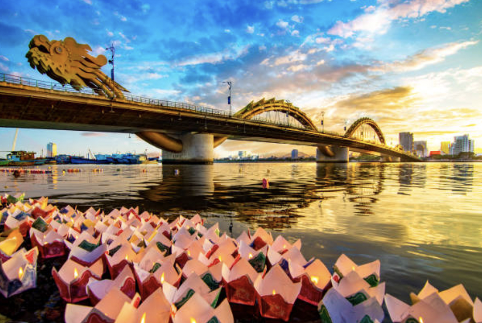 동남아 저녁의 선선한 바람을 맞으며 황금빛 용다리와 쩐티리 교를 구경하며 산책하면 다낭 여행오길 참 잘했다는